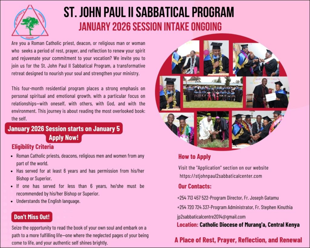 St John Paul II Sabbatical Centre is a retreat centre in a serene environment, situated at Maragua, Muran’ga County.